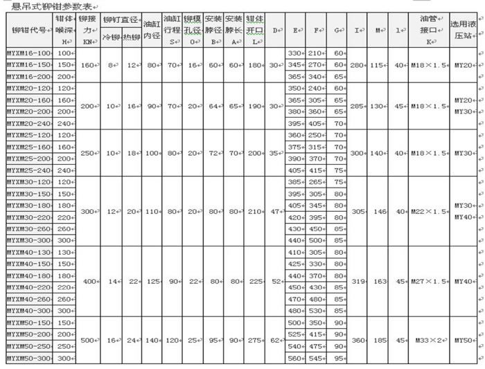 主要技術(shù)參數(shù)表